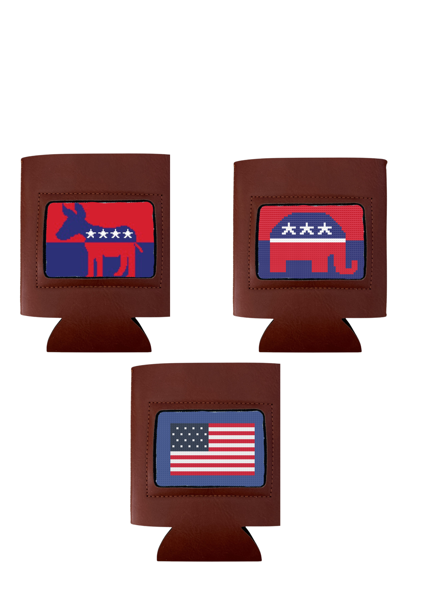 Needlepoint can cooler Needlepoint Kit- Everything you need to get started, Can Cooler fits 12 ounce beverage finished in full grain leather lined in neoprene to keep your drink cold.