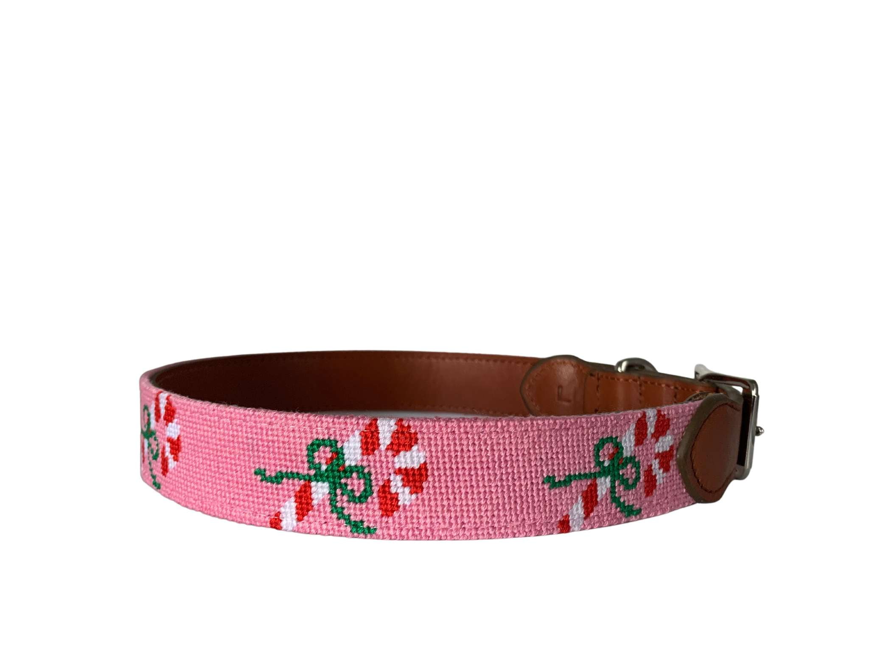 Needlepoint Dog Collar- Candy Cane Pattern (Pink or Navy)