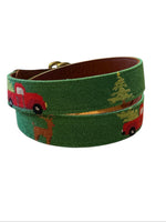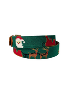 Needlepoint Belt-Santa and his Sleigh Hand Dtitched-D Ring (36"-38" size)