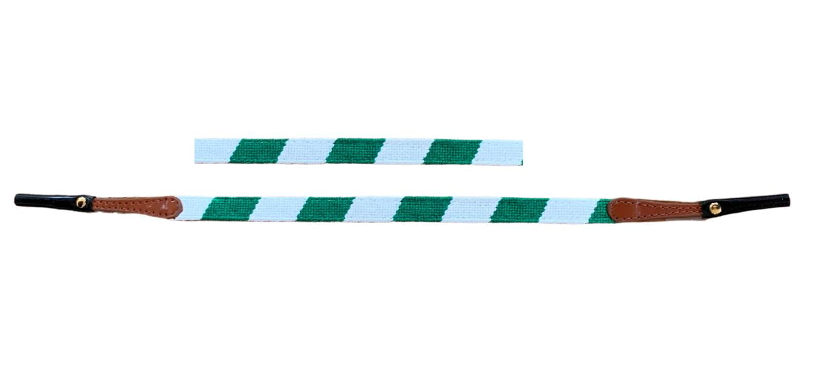 Needlepoint Sunglass Strap-White and Green Striped Needlepoint Pattern, Hand Stitched